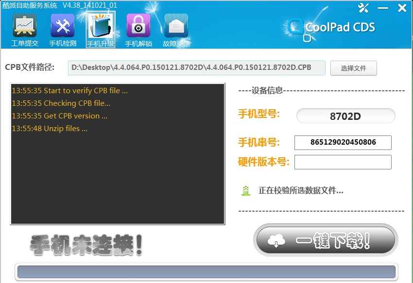 Coolpad CDS 就是酷派自助服务系统了,附件提供了最新的V4.38_141021_01 版本,下面我截取了一些操作流程: