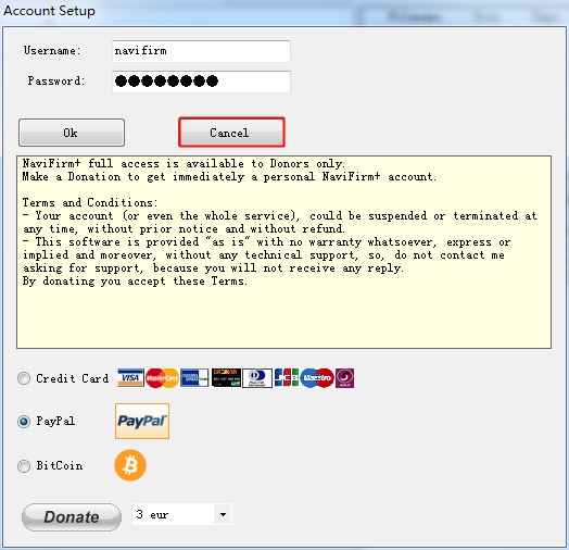 NaviFirm Plus Cancel Account Setup