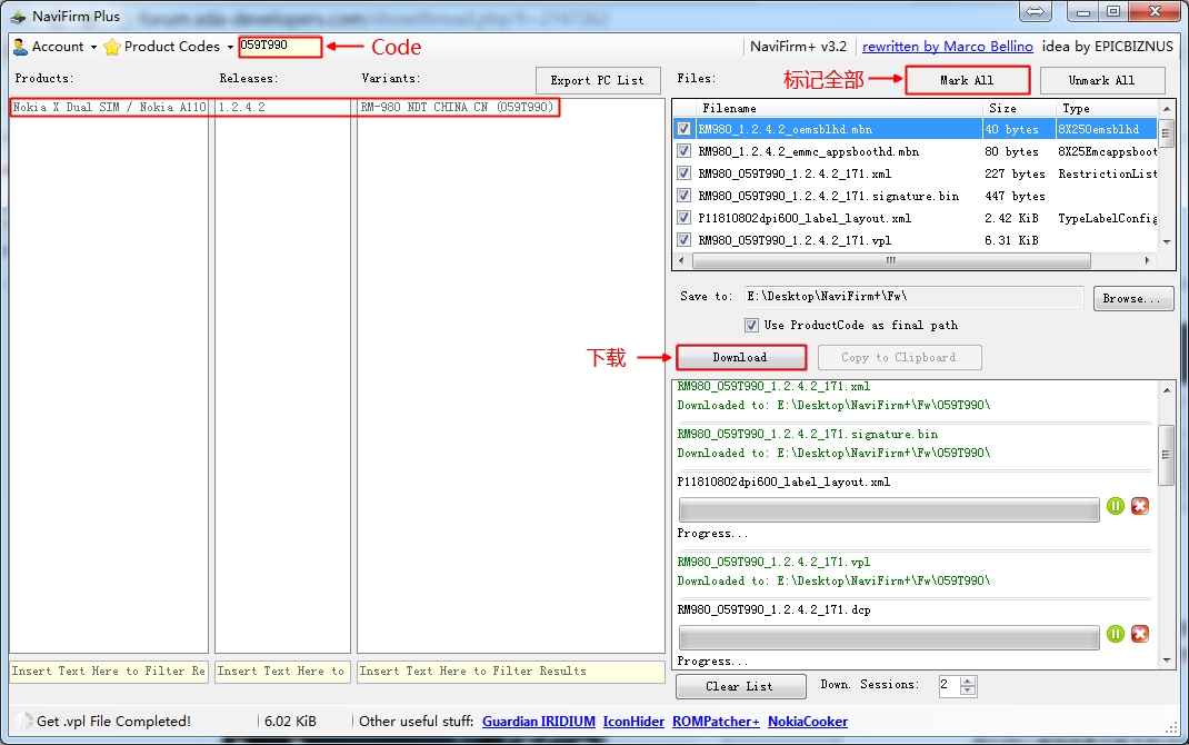 我们可以使用诺基亚官方的NCS(Nokia Care Suite)的DataPackageManager 或者Navifirm+ 来下载诺基亚X的官方原版ROM。因为NCS 较庞大,我们只需要下载固件并刷机,所以这里选择更轻巧的NaviFirm+ 。当然,如果你的诺基亚X 是059T990 的版本,可以直接下载@GZThznd 已分享到百度云的RM980_059T990_1.2.4.2_171.zip 最新官方刷机包,速度更快稳定。